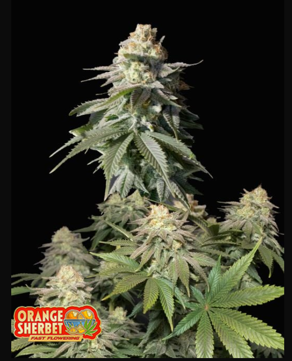 Orange Sherbet Fast Flowering je znana po svoji izjemni rasti, saj lahko pri gojenju na prostem doseže višino do 250 cm. Kljub temu je primerna tudi za notranje gojenje, saj pri indoor vzgoji prinaša visok pridelek 500–650 g/m², medtem ko lahko na prostem doseže 400–600 g na rastlino. Njena največja prednost je izjemno hiter cvetni cikel – le 7 tednov, kar omogoča več letin na sezono in učinkovito izrabo prostora.